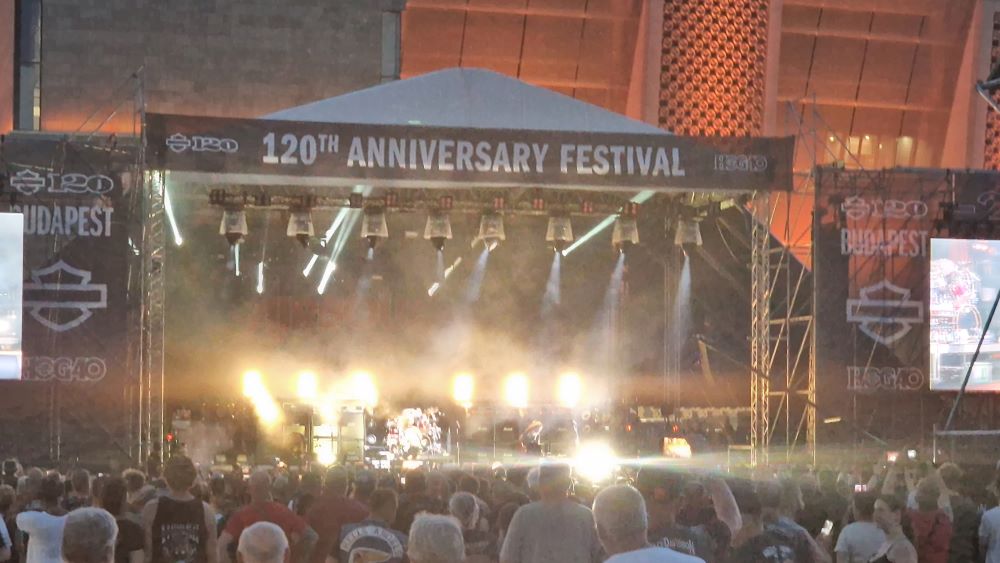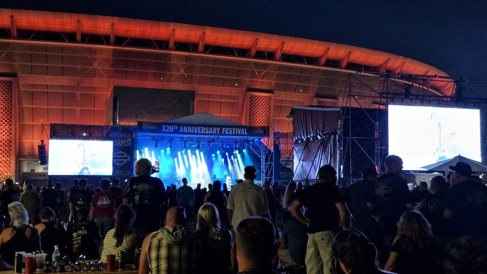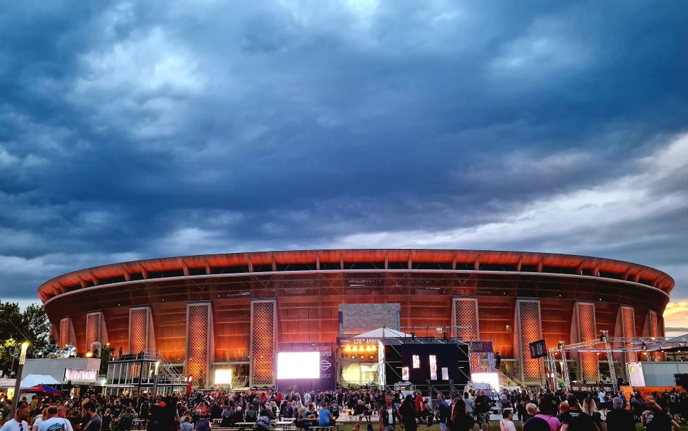 Riesenparty zum 120. Geburtstag von Harley-Davidson in Budapest. Das eigentliche Highlight rund um das Puskás-Stadion im Herzen der Stadt.