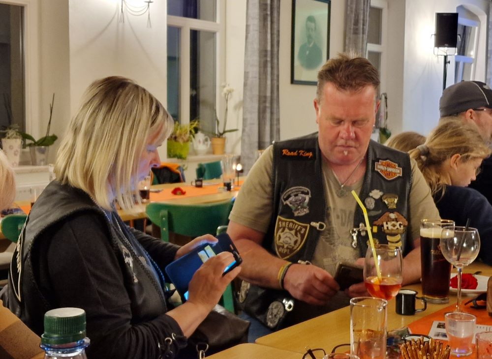 Dank bestem Wetter konnten wir uns sowohl drinnen als auch draußen gut verteilen, was der Wirkung des reichlich fließenden Alkohols außerordentlich gut tat. Einige von uns konnten/durften/mussten dann auch schon etwas früher die Segel streichen - zum Glück hat die Uhlig-Mühle auch Übernachtungsmöglichkeiten...