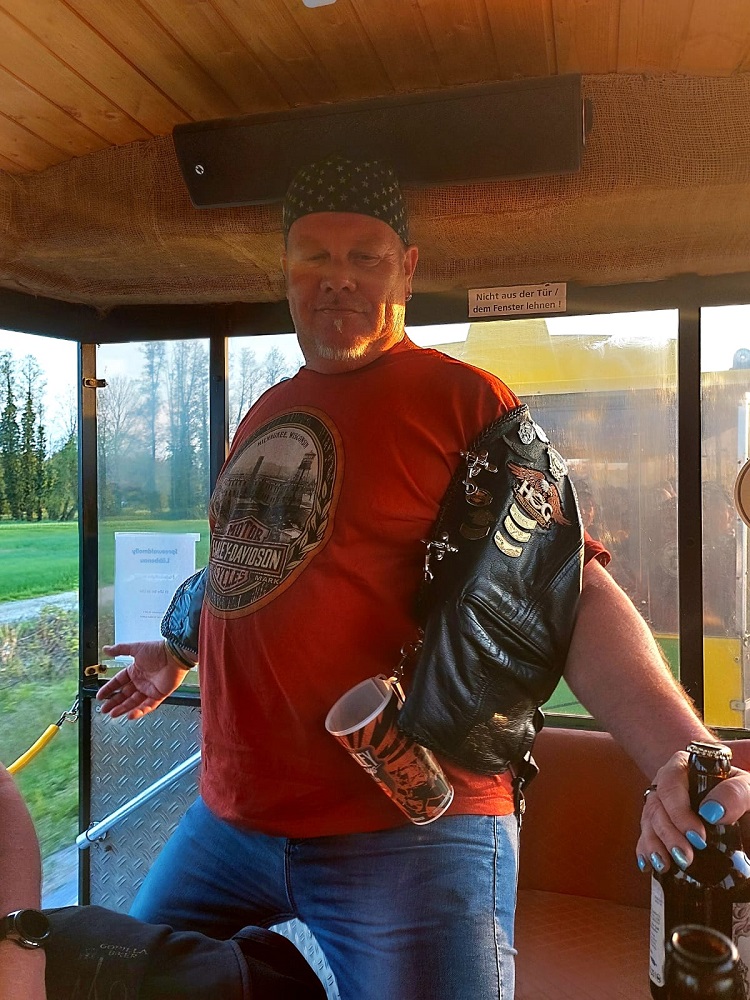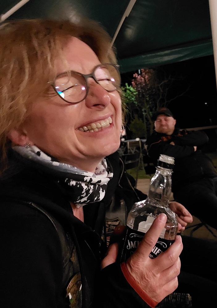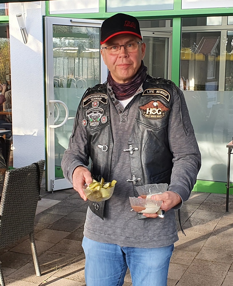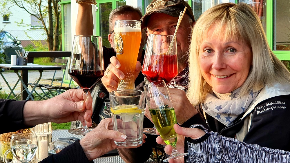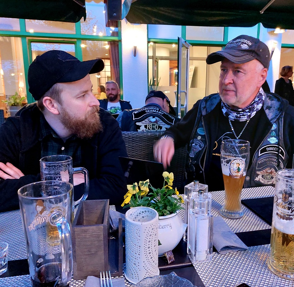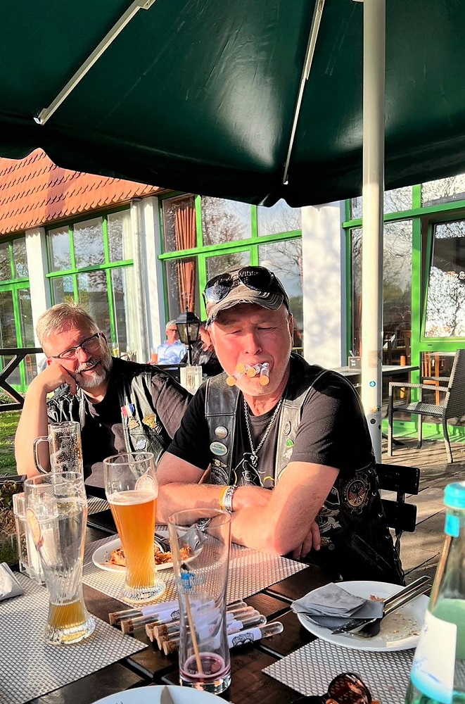 Mit dabei - neben Maskottchen Janosch - auch Matze und Carsten von Thomas Heavy Metal Bikes, die jetzt wissen, wie man Jackie-Flaschen auswringt, aus Reagenzgläsern trinkt und wo der Hund - ähm Dackel beim Fahren sitzt.