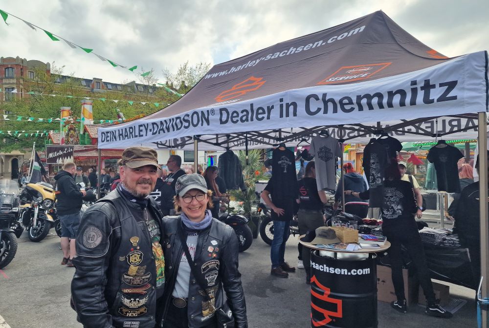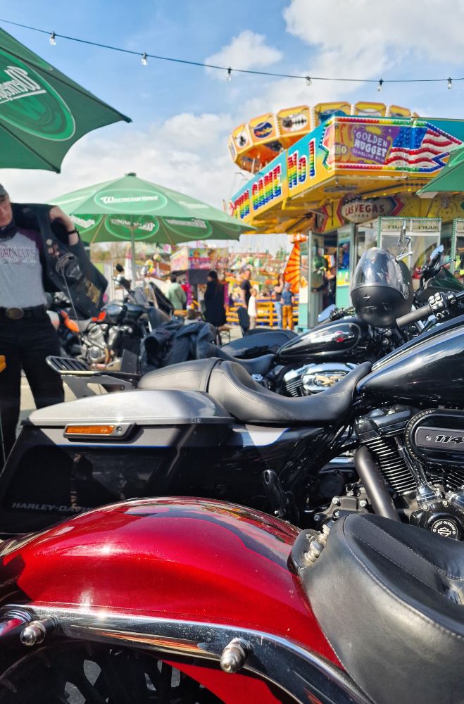 HARLEY auf dem Frühlings-Volksfest in Zwickau. Unser Dealer, Harley Davidson Chemnitz, präsentierte sich mitten zwischen den Schaustellern auf dem Festgelände und organisierte zusammen mit anderen bike-affinen Vereinen wie "Stark für Kinder" oder Ostler Racing Zwickau e.V. eine Bikerparty am Samstag. Da muss man doch hin - wer hat sonst schon die Gelegenheit, mit der Harley mitten über einen Rummel zu düsen?
