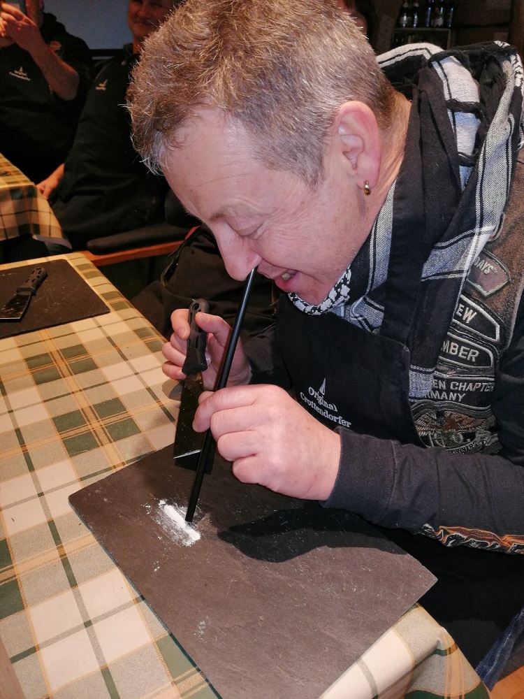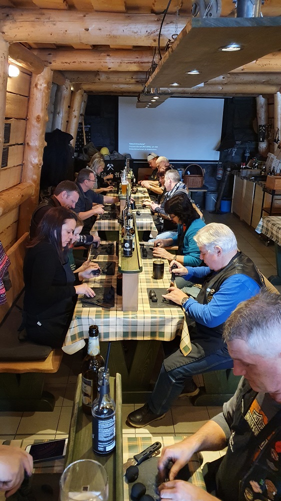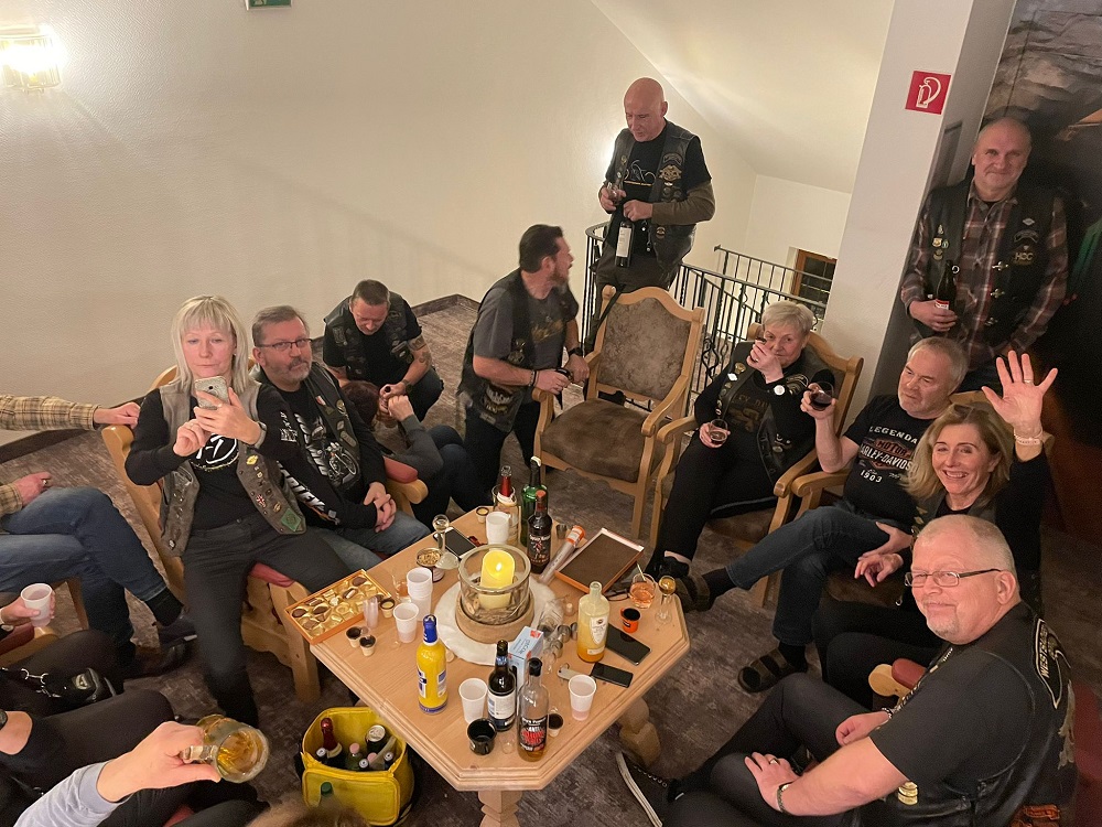 Das Erzgebirge erfreute uns mit echtem Winterwetter und die Köhlerhütte mit Köhler Schmidt als Chef erwies sich als perfekter Ort für unser Auftaktevent 2022. In urig-gemütlicher Atmosphäre starteten wir am Freitagabend unser Wochenende in der Köhlerstube mit reichlich Gaumenfreuden und noch reichlicherem Kräuter aus Köhlertränen. Es gab viel zu erzählen nach längerer Pause und so wurde der Abend nach der coronabedingten 22:00 Uhr Schließung traditionell im Hotelflur fortgesetzt. Erstaunlich, wer so alles nötige Flüssignahrung im Reisegepäck hatte... ;-) Trinken bis zum Kopfstand war angesagt, am nächsten Morgen graute es doch dem einen oder der anderen.