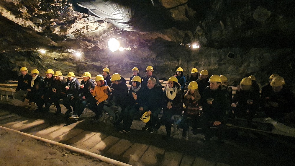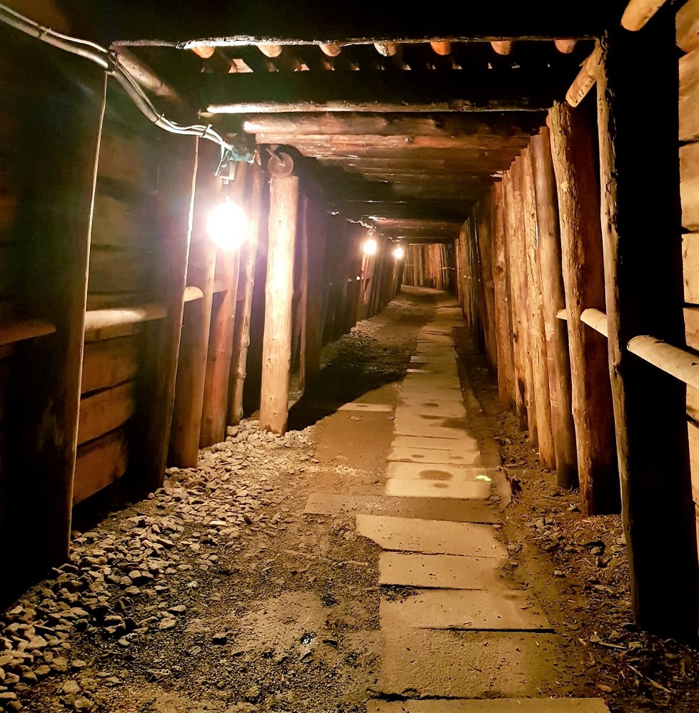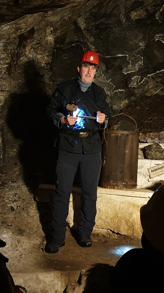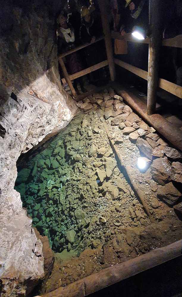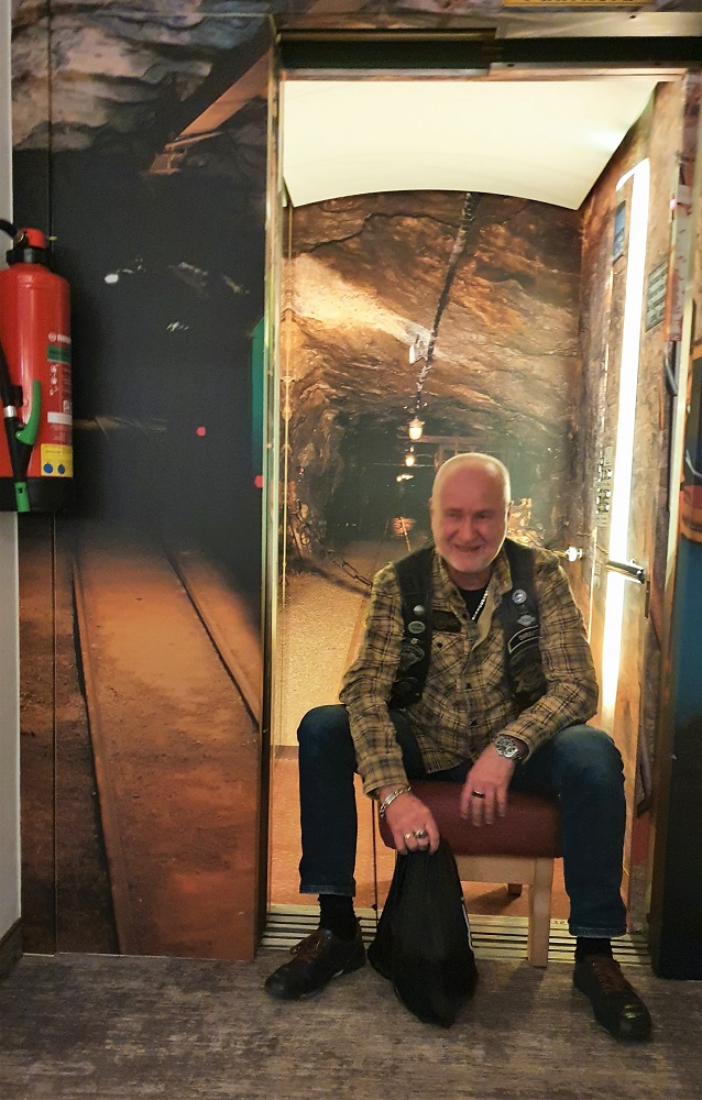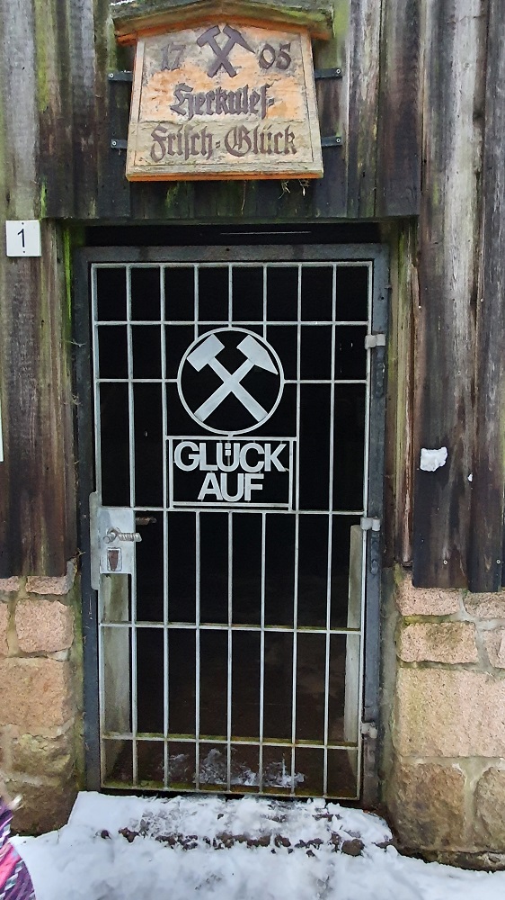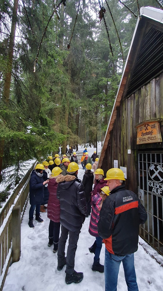 Station 2 war dann das Schaubergwerk Herkules-Frisch-Glück-Stolln. Mit kundiger Führung tasteten wir uns in 60m Tiefe durch den Berg, bestaunten Marmorsäle, Grundwasserseen mit Schwefelfarbe und schwimmende Steine. Je nach Körpergröße war diese Fahrung eine genickstarrende Herausforderung - de Bergleit müssen alle Zwerge gewesen sein...