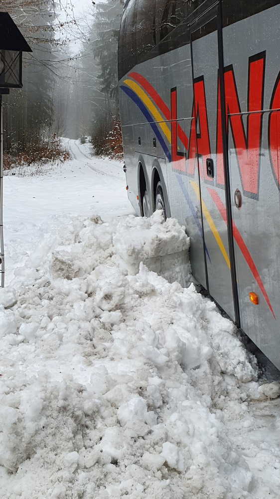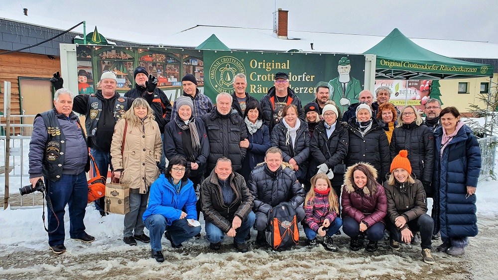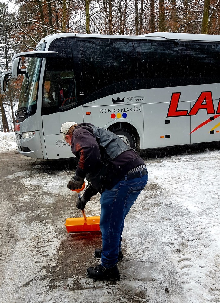 Von Christine und Dietmar gut vobereitet wurden wir im Reisebus nach Crottendorf ins Räucherkerzenland kutschiert - jedoch nicht ohne dass wir vorher dem Jungspund am Buslenkrad aus der Schnee- und Matscheinfahrt am Hotel heraushelfen durften. Unsere wackeren Jungs schippten wie die Männer!!