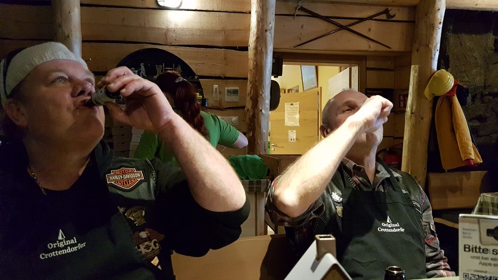 Nach Speckfettbemm und Schachtschnaps im Berg erwartete uns der Köhler Schmidt schon mit Glühwein am Hotel.