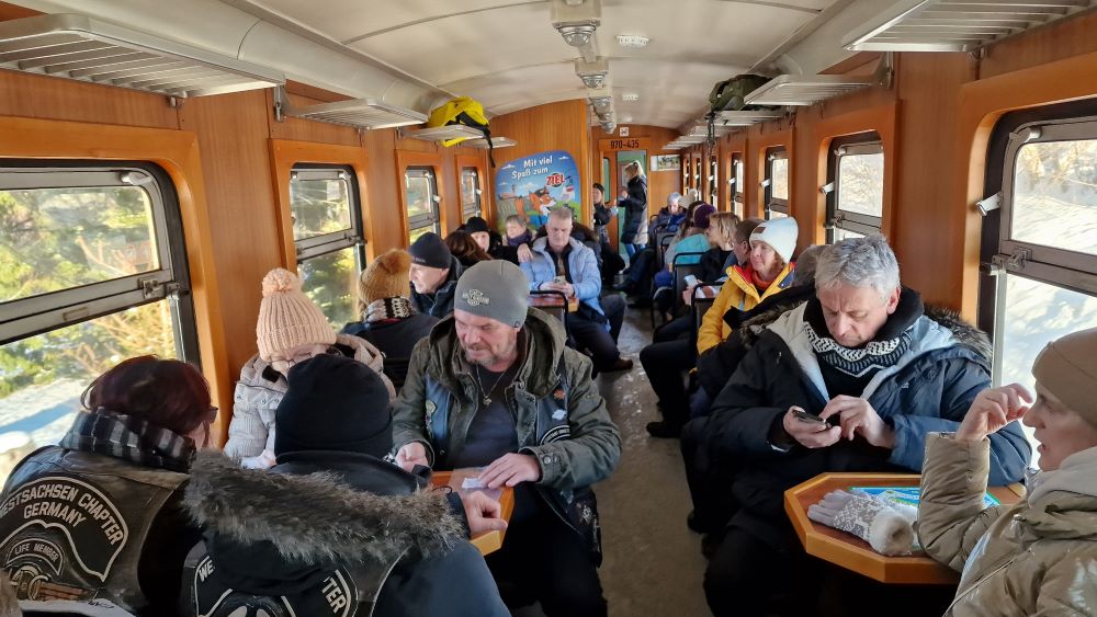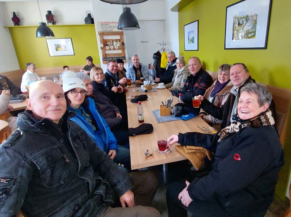 Eine lange Tradition findet ihre würdige Fortsetzung im WiWo 2024 - organisiert von Silvia und Heiko. Das Hotel & Gästehaus Vierenstraße war Start und Zielpunkt eines tollen Wochenendes bei strahlendem Sonnenschein und besten Bedingungen für unsere Member. Immerhin 29 waren dabei, als durch den verschneiten Winterwald zum Suppenmuseum nach Neudorf gestapft wurde, um danach mit 3 Kremsern den Ausflugsverkehr auf der Straße nach Oberwiesenthal zu blockieren und zum kröhnenden Abschluss mit der Fichtelbergbahn zurück ins Hotel zu dampfen. Gecko musste natürlich auf die Lok und lud danach zum Whisky-Tasting: rauchig - logisch. Zu später Stunde gab es noch eine paar Eindrücke aus Sardinien von Manu und Wolfram und einen kleinen Videochat von Andreas zur Kanada-Reise im Sommer 23.