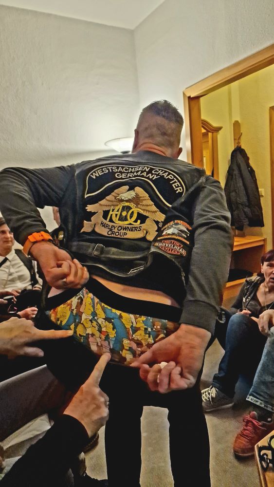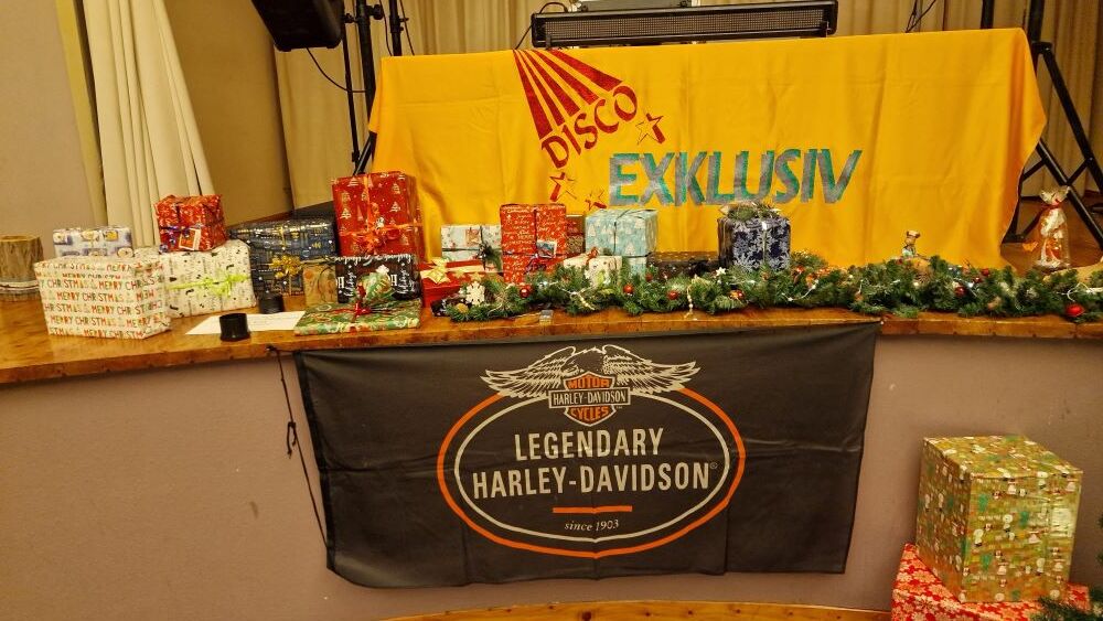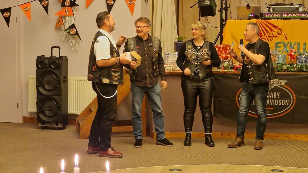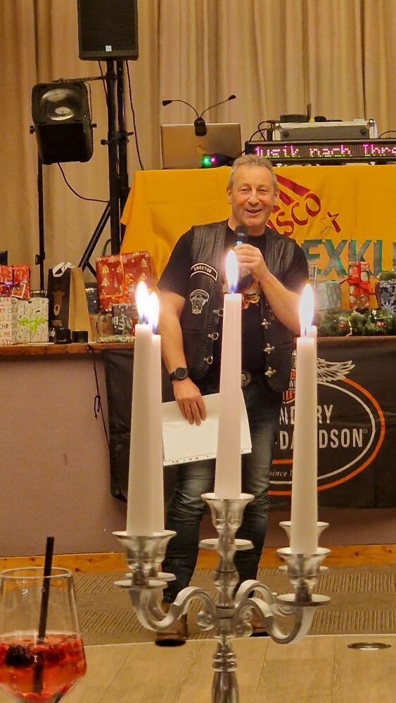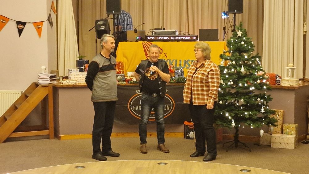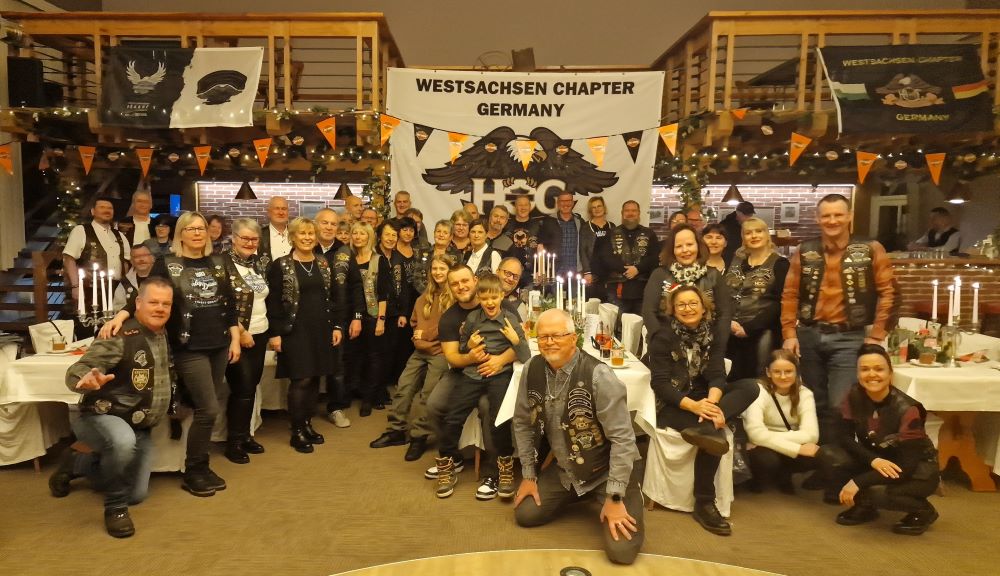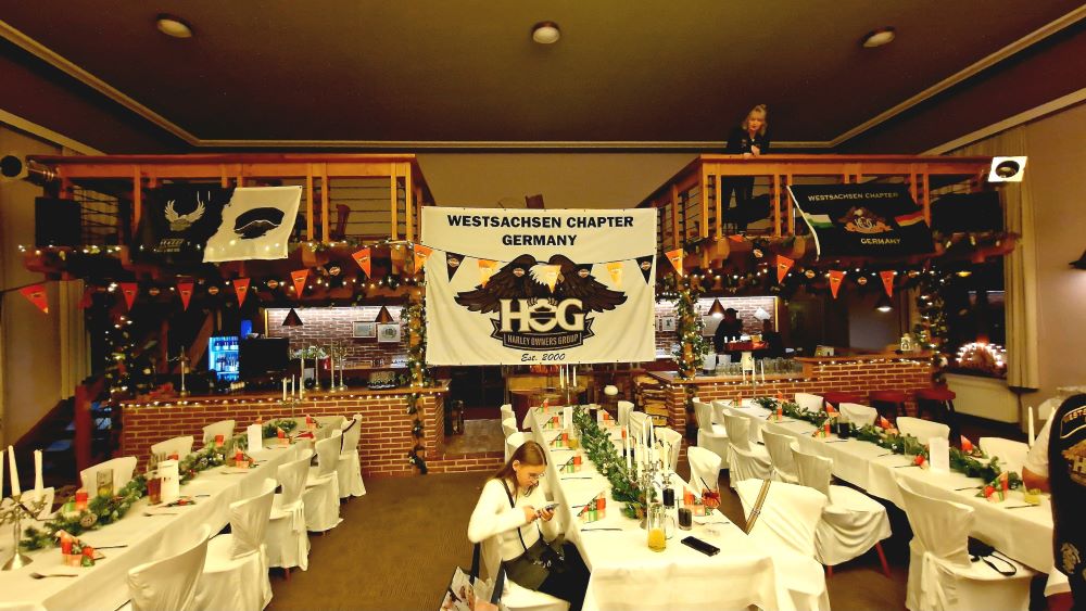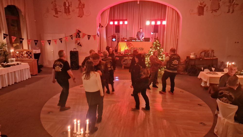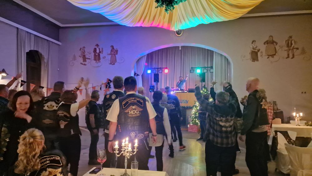 Christmas Party der Westsachsen im Hotel Bayerischer Hof Grünbach. Volle Hütte im ausdekorierten Saal und bestens aufgelegte Member ließen es zur Christmasparty wieder einmal so richtig krachen. Dank Marion und Gecko war alles da, was das Bikerherz begehrte - von Andrea Berg bis WE WILL ROCK YOU, von Ochsenbäckchen bis Crème Brûlée, vom selbstgebrauten Bier bis zum Schlummertrunk und vom Harley Hemd bis zum schrottigen Dildo.