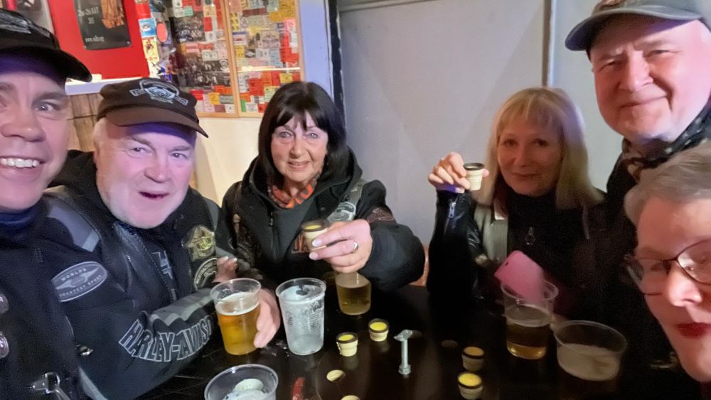Unser Head Road Captain Andreas führte uns am Samstag bei deutlich besserem Wetter noch ca. 200km durch den Harz, bevor wir am Abend wiederum die Vorräte des gelben Erfrischungsgetränkes in Grund und Boden tranken. Es soll Mädels gegeben haben, die gar nicht mehr zurück ins Hotel wollten...