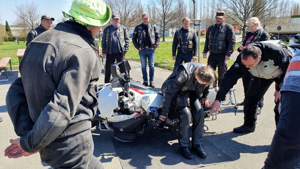Bei strahlendem Sonnenschein scheuchten uns Yves und Bernhard von SBS Racing in diesem Jahr wieder durch diverse Parcours zum Fahrsicherheitstraining. Wie immer vor dem Start in die neue Saison ist das Training eine willkommene Unstützung, um wieder ein Gefühl für die Maschine zu bekommen und so in schwierigen Verkehrssituationen richtig zu reagieren. Aber auch Tipps zur Ersten Hilfe und zum Aufrichten unserer schweren Bikes wurden vermittelt, Sylke fast zum Platzen gebracht und sogar Maria nebst Nachwuchs wurde am Neukirchner Festplatz gesichtet.